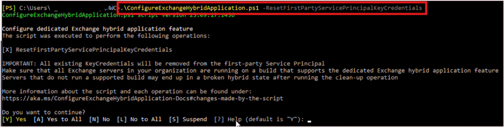 The script will execute and ask confirmation, Press A (Yes to All), it will ask Global Admin credential.