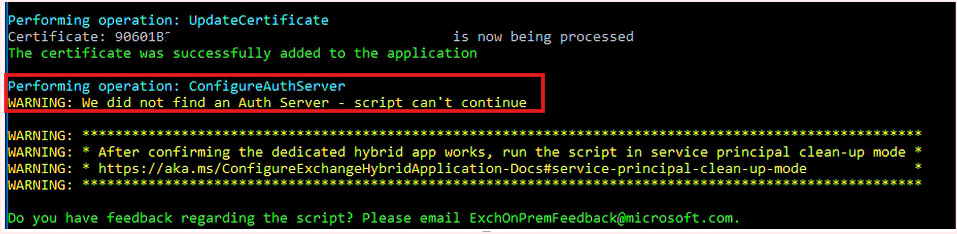 - Run the ConfigureExchangeHybridApplication.ps1 script.
